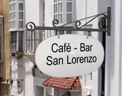 Este formato de letreros con el soporte en hierro forjado son demandados para todo tipo de negocios